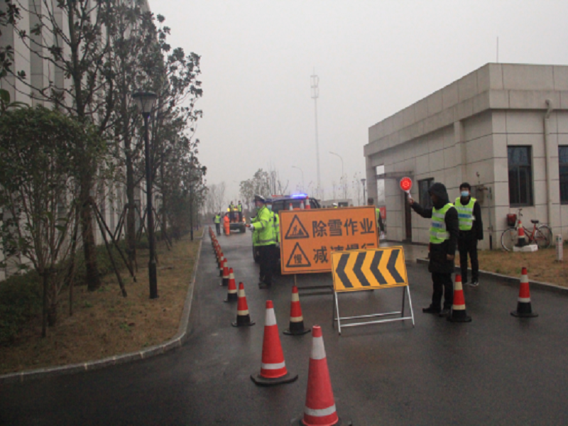 本次演練以接交警指令,銀湖路匝道積雪,需臨時封道清除積雪為背景,采取桌面推演與實戰(zhàn)演練相結(jié)合。共分為三個環(huán)節(jié),先是通過電子屏幕作銀湖路臨時封道作業(yè)桌面推演,全面展示交通應(yīng)急力量應(yīng)對多樣災(zāi)種綜合應(yīng)急處置能力。再到情報板信息發(fā)布模擬演練,針對路面積雪情況變化及時同步更新情報板提示信息,配合啟用高音喇叭提醒過往車輛。最后進(jìn)行道路除雪實操演練,指令下達(dá)后,應(yīng)急人員、機(jī)械車輛迅速趕到園區(qū)北側(cè)輔路集結(jié)完畢,在交管車輛的指引下,向模擬積雪路段行進(jìn),開始投入緊張的除雪鏟冰作業(yè)當(dāng)中。